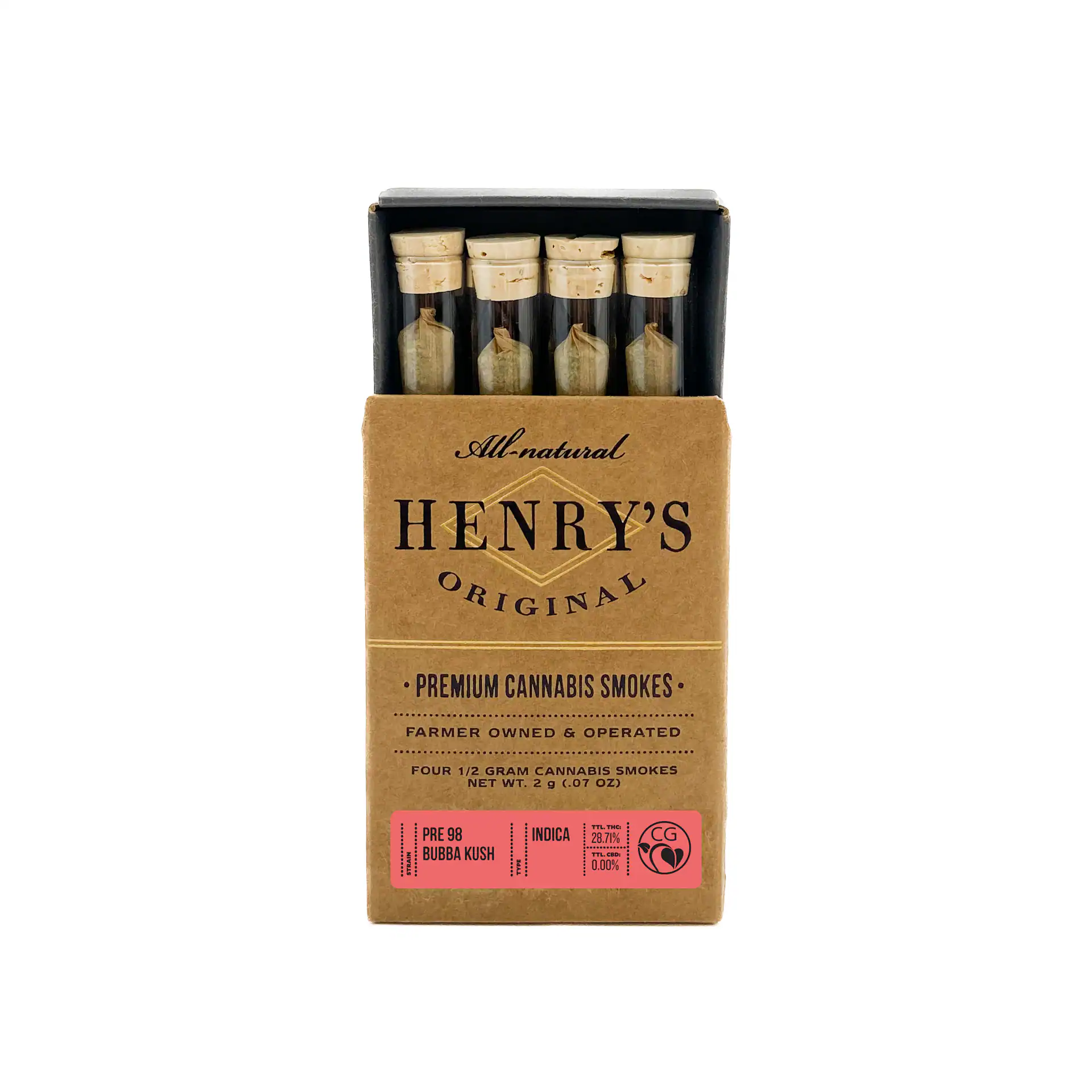 Each Henry’s Original pre-roll is packed with heirloom cannabis grown with the utmost care by master cultivators. We grind our flower in a custom grinder to ensure the finest consistency for a smooth, slow-burning smoke, and hand-roll each joint to ensure consistent quality.